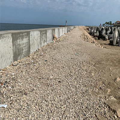 Built a revetment to support the lighthouse of Ras Elbar. The main purpose is helping the back area for the old support by adding this revetment that is 400 m long. We also built a concrete boardwalk for the public use. We renovated the back area and added support for the light house using 9 tons of dollas concrete to avoid the consequences of thunderstorms. We also provided all the suitable services.