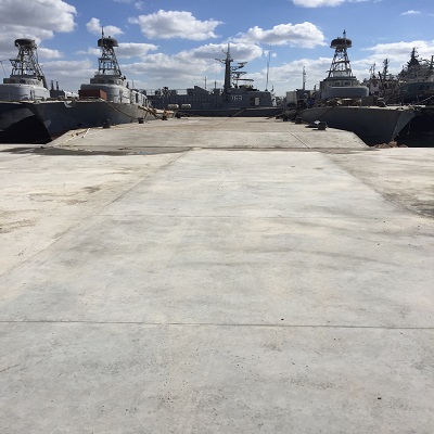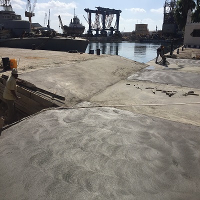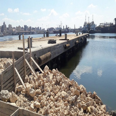Constructed a concrete slab scaffold that's 50 m long based on a steel skeleton and piles filled with concrete to allow the ships to reach their appropriate depths. We have also done the services for the ships as electricity plugs , water , solar, cables and the finishing touches for the floors , back area and the scaffold entrance.
