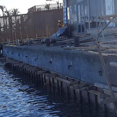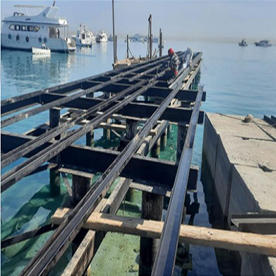 Extended the Marine Sport Club's concrete blocks pier to allow the ships to reach their appropriate depths. We also built a beech pine scaffold that's 50 m long based on an steel skeleton and piles filled with concrete. We have also done the finishing touches for the floors and the back area for public use.